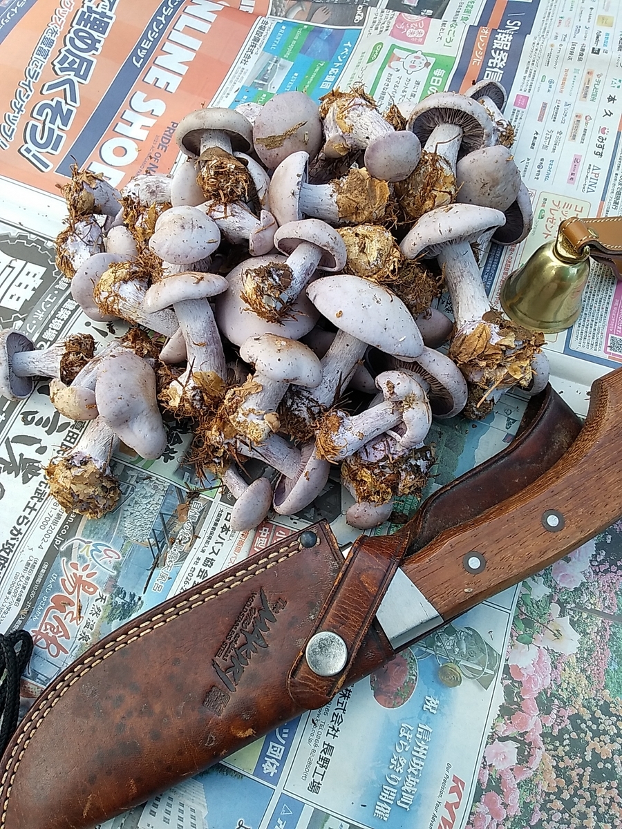 10月も下旬になるとムラサキシメジが列をなして顔を出していました。しかも、出たてのかわいいのばかりです。こちらも今日行き合う皆さんにおすそ分けしました。