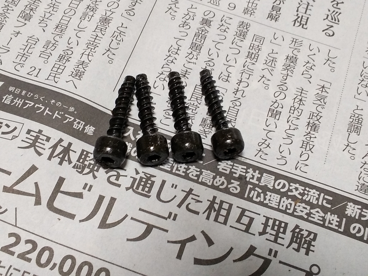 珍しい2条ネジというキャップボルトで止まっていました。少ない回転数でしっかり喰いつくようになっているようです。